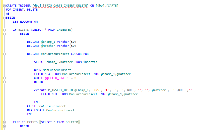 On aurait pu donc tout aussi bien insérer directement cette table depuis le trigger en utilisant les tables inserted ou deleted sans plus de fioriture: nul besoin de variables, ni de curseur, ni de procédure.